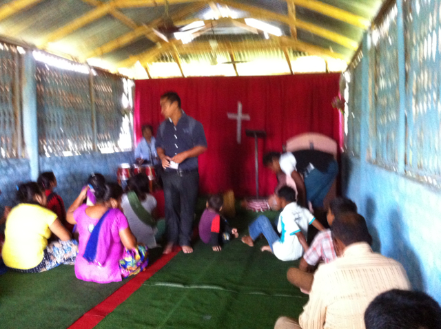 “This is our church” an points towards a bamboo hut 4 x 6m, loosly woven bamboo stripes form the walls, sheet metal for the roof.